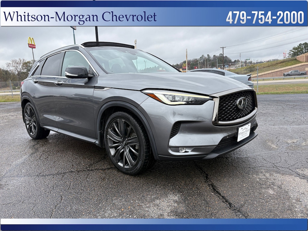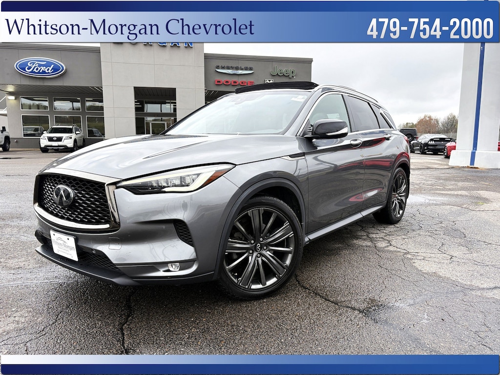 **2020 Infiniti QX50 All Wheel Drive Essential ** Panoramic Dual Pane Sunroof ** Navigation ** Edition 30 Pkg w/ Black 20 Inch Alloy Wheels, Black Accents, Black Mirror Caps, & Black Grille ** Leather Interior ** Heated Seats ** Dual Power Front Seats ** Power Liftgate ** Infiniti InTouch w/ Center Touchscreen, Apple Carplay, Android Auto, Satellite Radio, Bluetooth, 4G Wifi ** Blind Spot Monitoring, Lane Departure Prevention, Adaptive Front Lighting w/ Cube Design LED Headlights, Intelligent Adaptive Cruise Control, Forward Collision Warning w/ Auto Emergency Braking & Pedestrian Auto Braking, Rear Cross Traffic Alert w/ Rear Auto Braking, Front & Rear Park Assist Sensors w/ Rear Vision Camera ** Remote Engine Start ** Rain Sensing Wipers ** Front Door Handle LED Welcome Lights ** VERY High Optioned QX 50 **