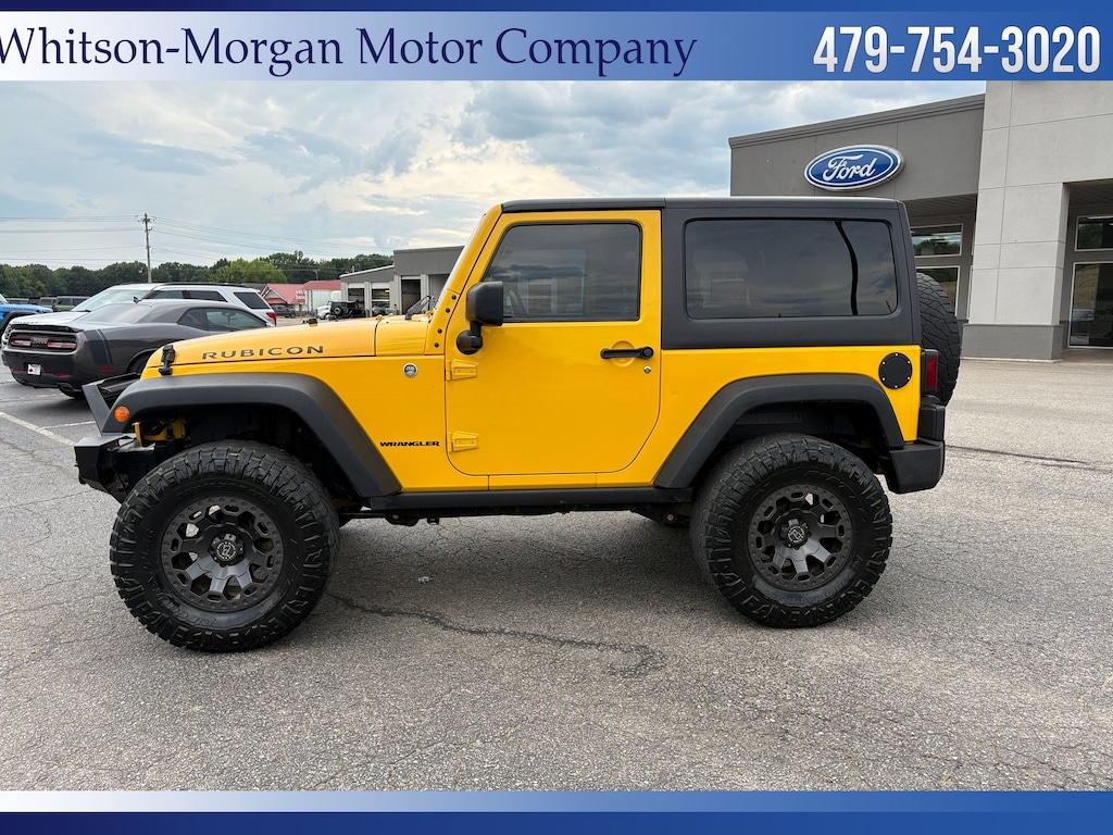 **Lifted 2015 Wrangler 2dr Rubicon in Baja Yellow ** 3.6L ** Lifted Approximately 3-4 Inches w/ 4 New 35 Inch Mud Tires ** Aftermarket Black Rhino Alloy Wheels ** Aftermarket Front Bumper w/ Integrated LED Light ** 3 Piece Black Hardtop ** Power Windows, Locks, Power Mirrors ** Remote Keyless Entry ** Front and Rear Axle Lockers ** Electronic Sway Bar Disconnect ** 4 Skid Plates ** Automatic Transmission** Trailer Towing Equipment ** Local Trade In ** VERY Sharp Rubicon**