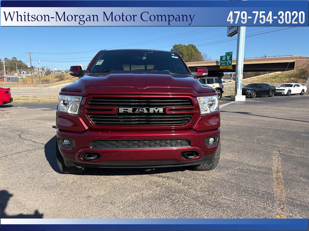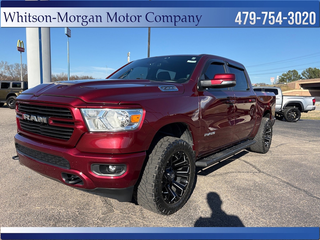 **2021 Ram 1500 Crew Cab 4wd Big Horn ** 5.7L Hemi ** Leveling Kit (Raises the truck approximately 2.5 inches) with Aftermarket, Black 20 Inch Wheels by Fuel & 33-1250-20 Inch Mud Terrain Tires ** Sport Appearance Pkg w/ Body Colored Bumpers & Grill ** 8.4 Inch Center Touchscreen w/ Apple Carplay, Android Auto, Satellite radio, Bluetooth ** 8 Way Power Driver's Seat ** Remote Vehicle Start ** Trailer Tow Class IV Hitch w/ Trailer Brake Controller ** Rear Backup Camera ** Protection Group w/ skid plates on the Front Suspension, Fuel Tank, & Steering Gear ** Anti Spin Rear Axle w/ 3.92 Gears ** Great Color **Very Aggressive Stance **