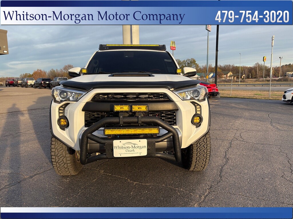 ** Lifted 2021 Toyota 4Runner TRD Off Road Premium 4wd ** Lifted approximately 3 inches ** Aftermarket Carbonized Alloy Wheels w/ Oversized All Terrain Tires (Apprx 33 Inch Tires) ** Aftermarket Full Roof Rack w/ Rear Ladder and Integrated LED Light Bar in the Front ** Aftermarket Rear Bumper Push Bar ** Aftermarket Rear Interior Cargo Area Rack ** Aftermarket Fender Flares ** Aftermarket Front Bull Bar w/ LED Lights ** Leather Interior w/ Heated Seats ** Sunroof ** Premium FactoryAudio w/ Navigation, Touchscreen, Bluetooth, Satellite Radio ** Power Sliding Rear Glass ** Skid Plates ** Multi Terrain Select w/ Crawl mode ** Tow Hitch ** Remote Keyless Entry w/ Push Button Start **