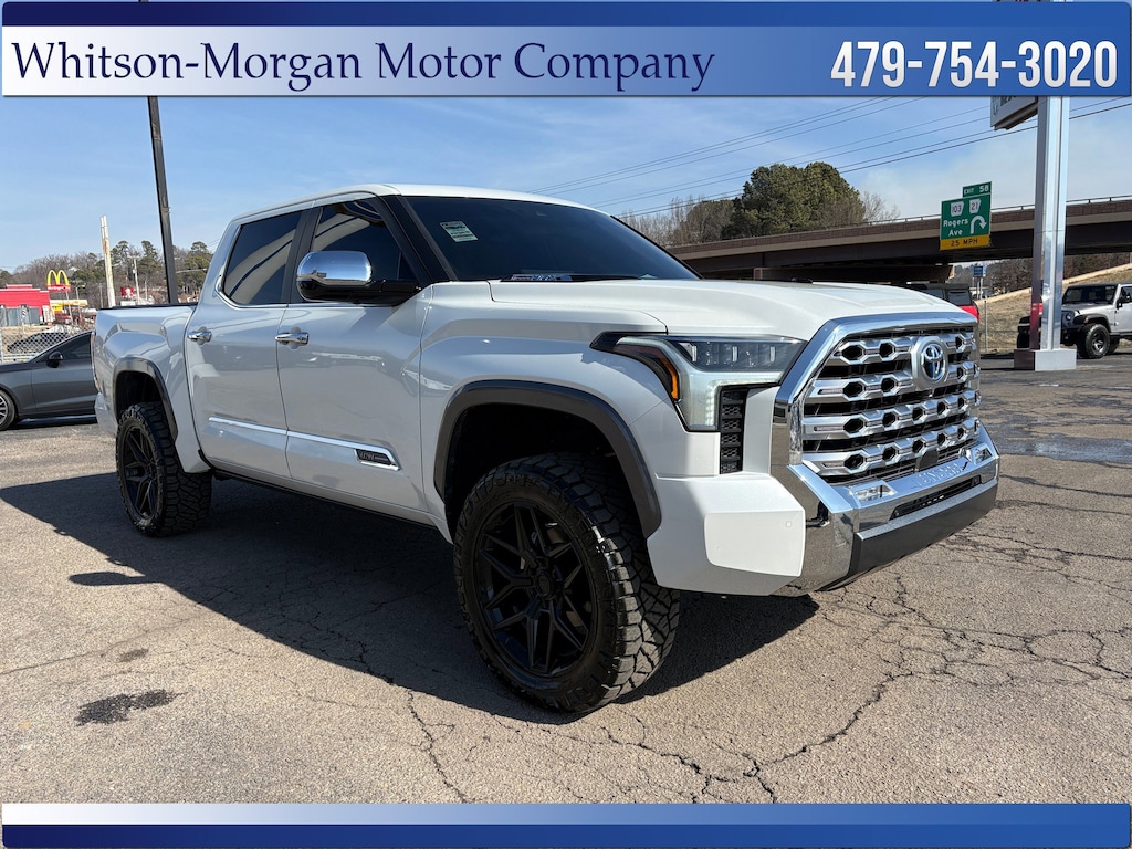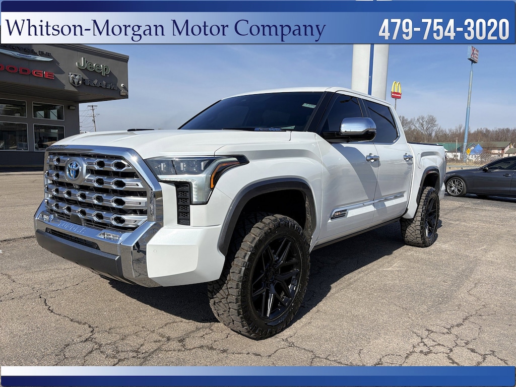 *2024 Tundra Crew Cab 4wd 1794 Edition in Wind Chill Pearl Coat ** Panoramic Sunroof ** Ready Lift Leveling Kit (Raises the truck appx 2.5 inches) with Aftermarket Black 22 Inch Wheels by Fuel and 33-12.50-22 Inch Nitto Ridge Grapplers ** Navigation ** Premium Saddle Tan Leather Interior w/ Heated & Ventilated Front & Rear Seats ** JBL Premium Factory Audio System, Navigation, 14 Inch Touchscreen, Apple Carplay, Android Auto, Bluetooth, Satellite Radio, 12 Speakers w/ Sub ** Power Deploying Running Boards ** Aftermarket Tonneau Cover ** 10 Inch Color Heads Up Display ** Toyota Safety Sense 2.5 w/ Pre Collision & Pedestrian Detection, Full Speed Dynamic Radar Cruise Control, Lane Departure Alert w/ Steer Assist, Panoramic View Monitor w/ Cameras, Rear View Camera w/ Parking guidelines ** American Walnut Wood Interior Accents ** 12.3 Inch Driver Screen w/ selectable Guage Displays ** Dual Power Seats w/ Driver Memory ** Class IV Trailer Tow ** Power Folding, heated Mirrors ** Interior Ambient Lighting ** LED Headlights, LED Sequential Taillights, LED Fog Lights ** Cargo Bed LED Lighting ** 120V/400W Cargo Bed Outlet ** BEAUTIFUL & HIGHLY OPTIONED 1794**